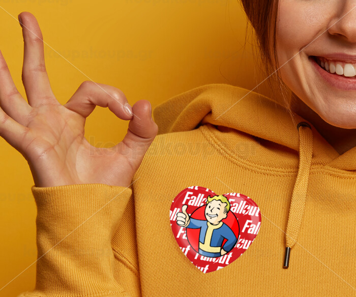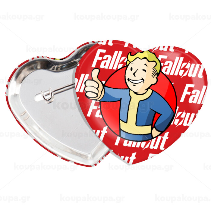 Fallout Vault Boy, Κονκάρδα παραμάνα καρδιά (57x52mm)