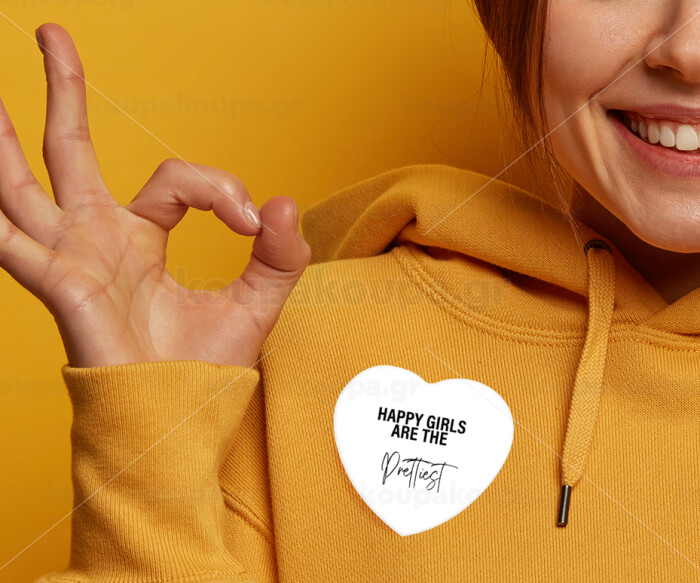 Happy girls are the prettiest, Κονκάρδα παραμάνα καρδιά (57x52mm)