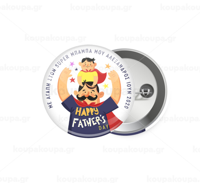 Happy Fathers Day με όνομα, Κονκάρδα παραμάνα 5.9cm