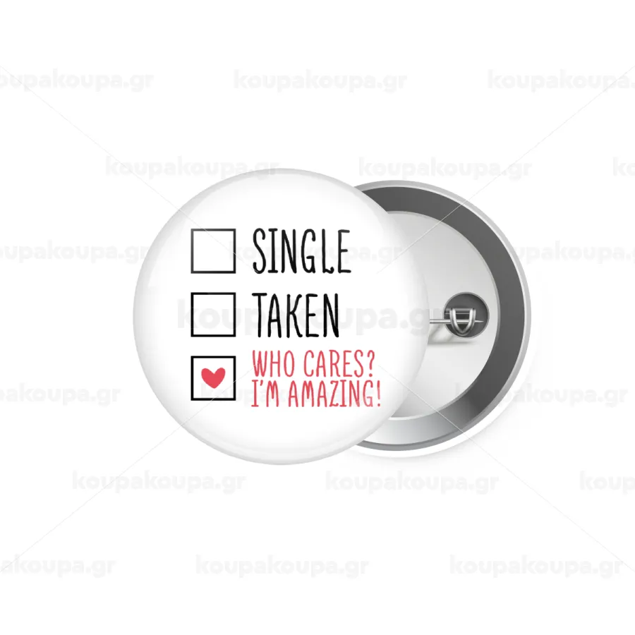 Single, Taken, Who cares i'm amazing, Κονκάρδα παραμάνα 5.9cm