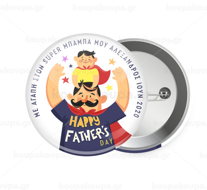 Happy Fathers Day με όνομα, Κονκάρδα παραμάνα 7.5cm