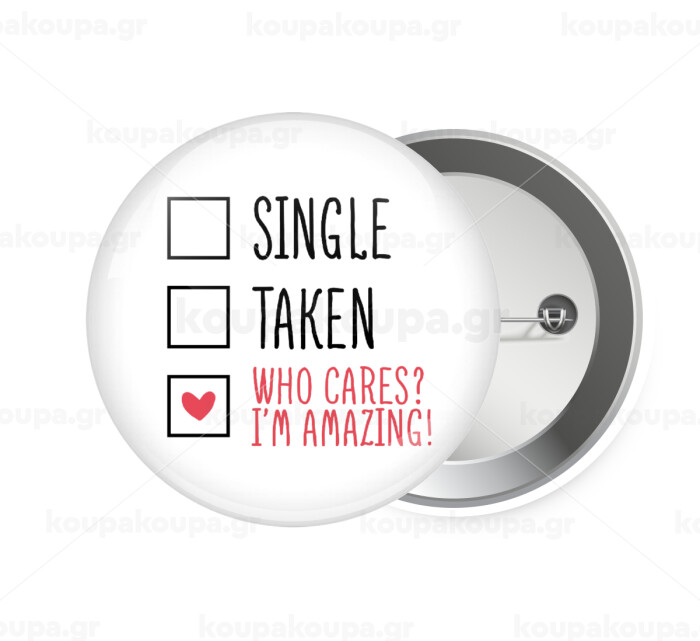 Single, Taken, Who cares i'm amazing, Κονκάρδα παραμάνα 7.5cm