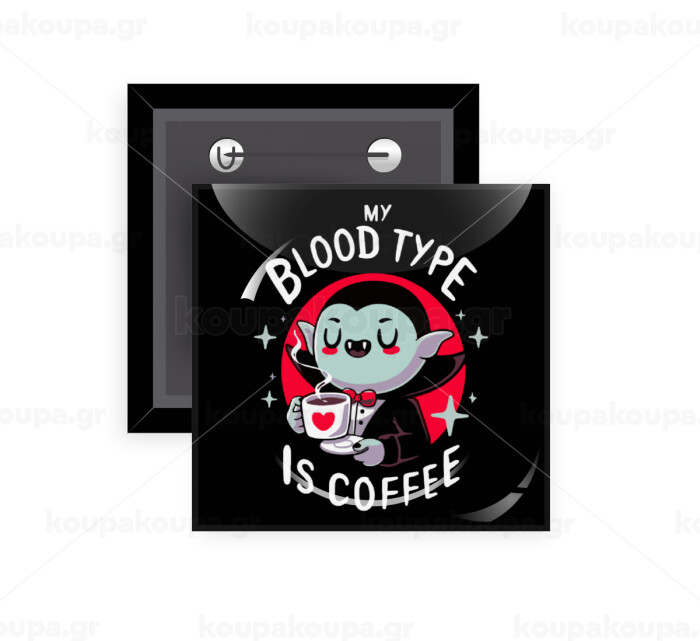 My blood type is coffee, Κονκάρδα παραμάνα τετράγωνη 5x5cm