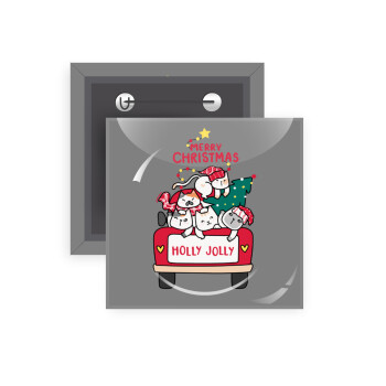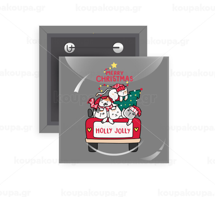 Merry Christmas cats in car, Κονκάρδα παραμάνα τετράγωνη 5x5cm