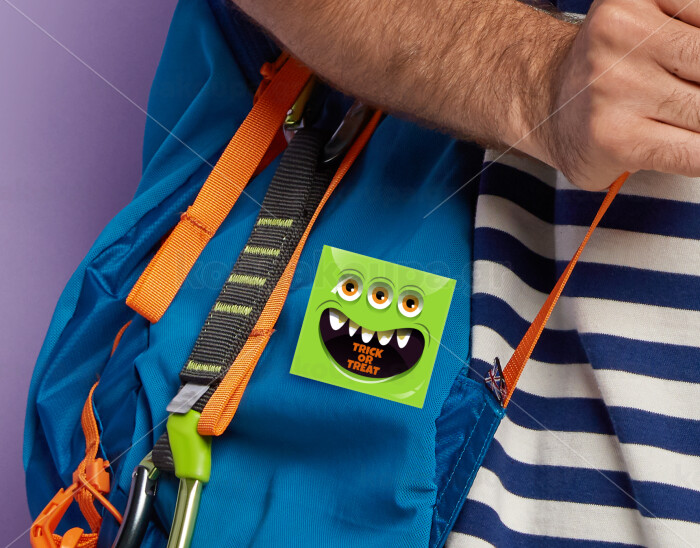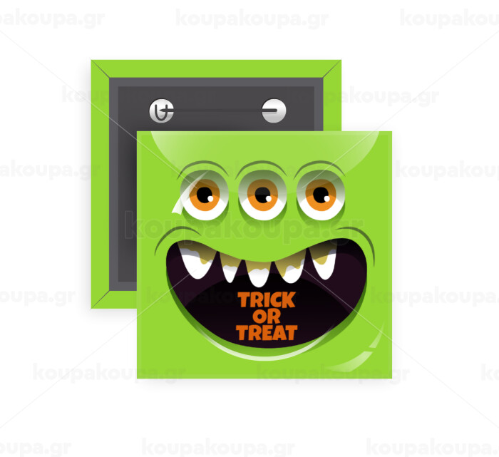 Halloween trick or treat 3 eyes monster, Κονκάρδα παραμάνα τετράγωνη 5x5cm