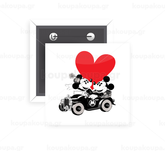 Mickey & Minnie love car, Κονκάρδα παραμάνα τετράγωνη 5x5cm