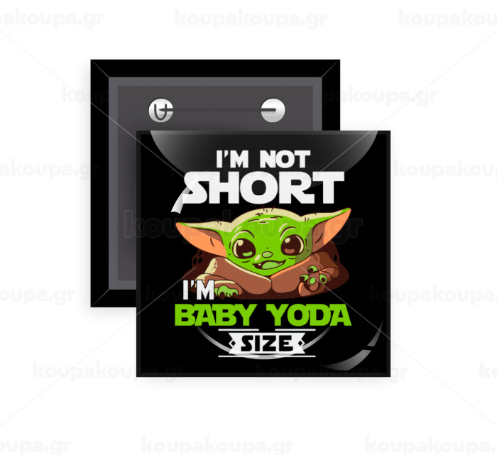 I'm not short, i'm Baby Yoda size, Κονκάρδα παραμάνα τετράγωνη 5x5cm