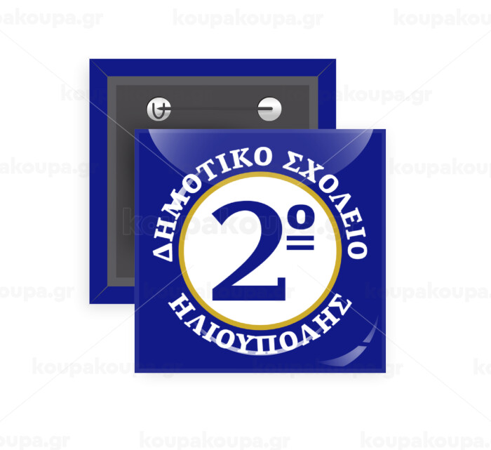 Έμβλημα Σχολικό μπλε/χρυσό, Κονκάρδα παραμάνα τετράγωνη 5x5cm