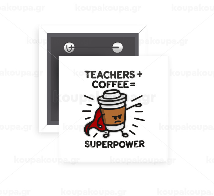 Teacher Coffee Super Power, Κονκάρδα παραμάνα τετράγωνη 5x5cm