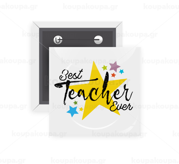 Teacher super star!!!, Κονκάρδα παραμάνα τετράγωνη 5x5cm