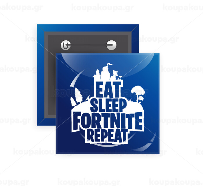 Eat Sleep Fortnite Repeat, Κονκάρδα παραμάνα τετράγωνη 5x5cm