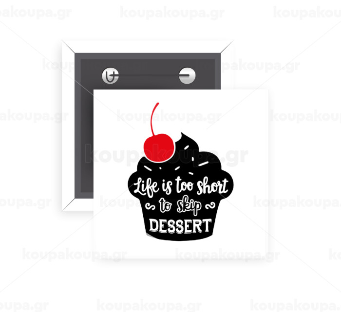 Life is too short, to skip Dessert, Κονκάρδα παραμάνα τετράγωνη 5x5cm