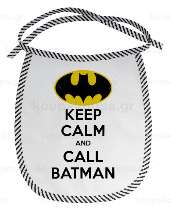 KEEP CALM & Call BATMAN, Σαλιάρα μωρού αλέκιαστη με κορδόνι Μαύρη