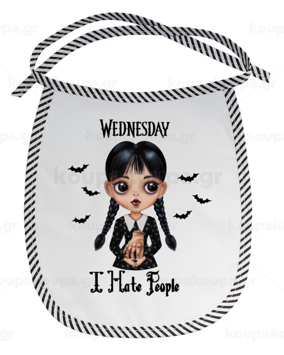Wednesday Adams, i hate people, Σαλιάρα μωρού αλέκιαστη με κορδόνι Μαύρη
