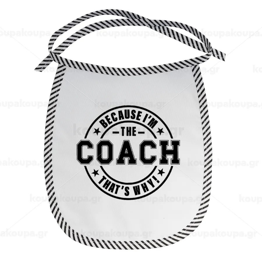 Because i'm the Coach, Σαλιάρα μωρού αλέκιαστη με κορδόνι Μαύρη