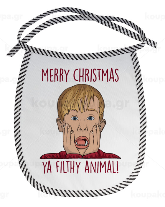 home alone, Merry Christmas ya filthy animal, Σαλιάρα μωρού αλέκιαστη με κορδόνι Μαύρη