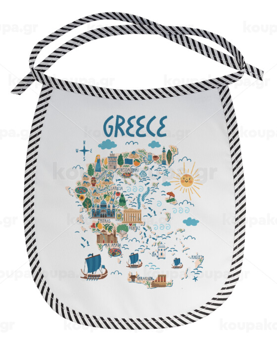 Χάρτης Ελλάδος, Σαλιάρα μωρού αλέκιαστη με κορδόνι Μαύρη