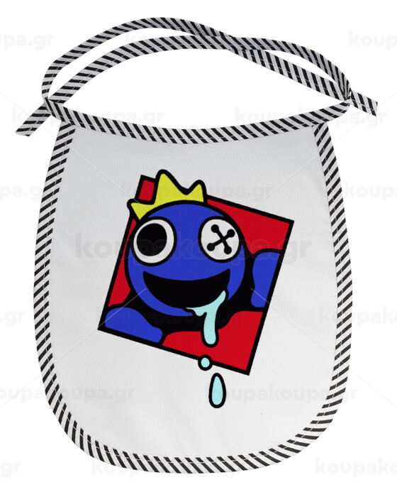 Blue, Rainbow friends, Σαλιάρα μωρού αλέκιαστη με κορδόνι Μαύρη