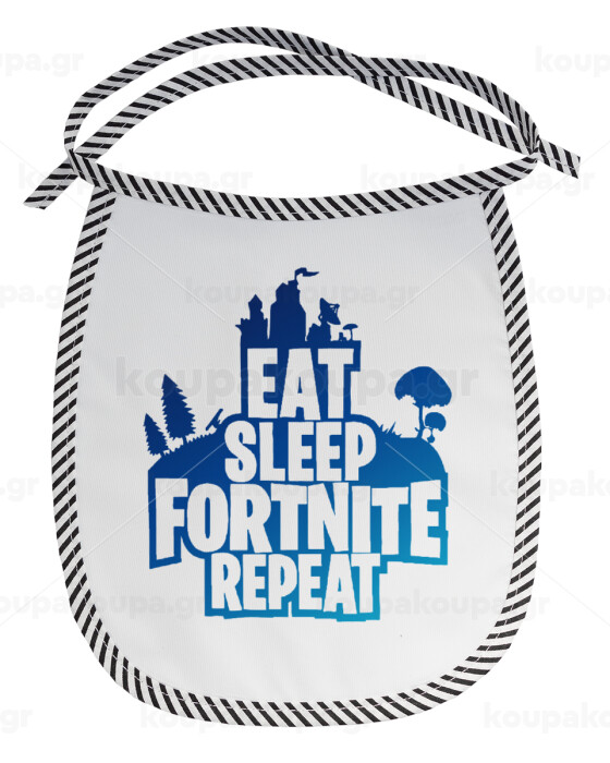 Eat Sleep Fortnite Repeat, Σαλιάρα μωρού αλέκιαστη με κορδόνι Μαύρη