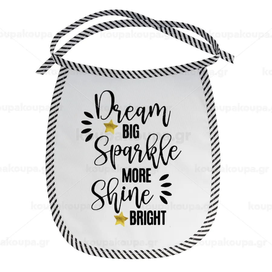 Dream big, Sparkle more, Shine bright, Σαλιάρα μωρού αλέκιαστη με κορδόνι Μαύρη