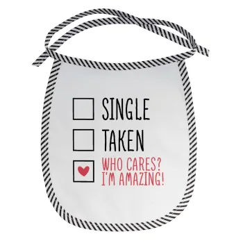 Single, Taken, Who cares i'm amazing, Σαλιάρα μωρού αλέκιαστη με κορδόνι Μαύρη