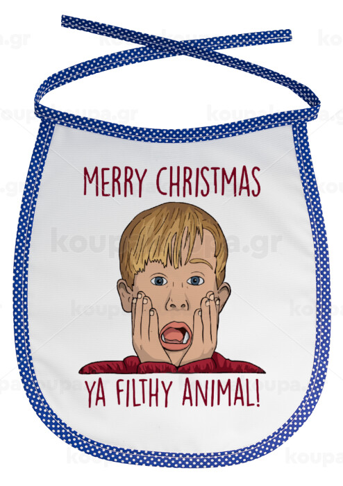 home alone, Merry Christmas ya filthy animal, Σαλιάρα μωρού αλέκιαστη με κορδόνι Μπλε