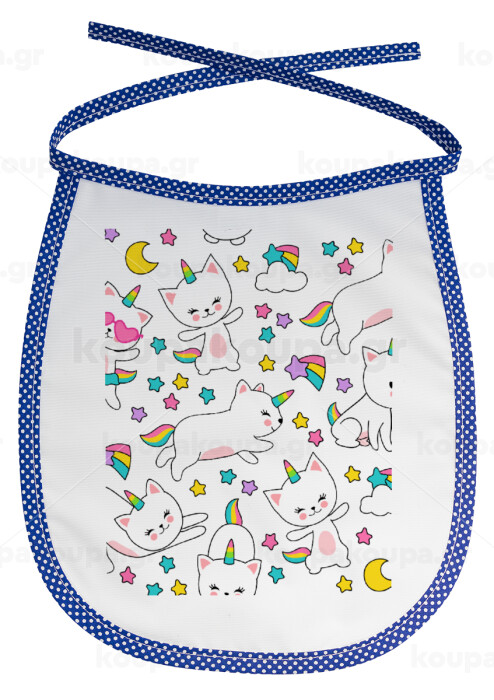 Cats unicorns, Σαλιάρα μωρού αλέκιαστη με κορδόνι Μπλε