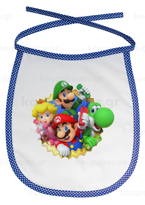 Super mario and Friends, Σαλιάρα μωρού αλέκιαστη με κορδόνι Μπλε