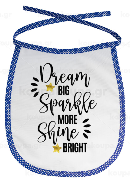 Dream big, Sparkle more, Shine bright, Σαλιάρα μωρού αλέκιαστη με κορδόνι Μπλε