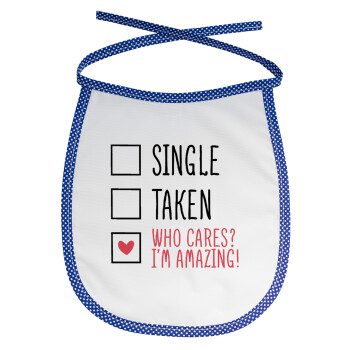 Single, Taken, Who cares i'm amazing, Σαλιάρα μωρού αλέκιαστη με κορδόνι Μπλε