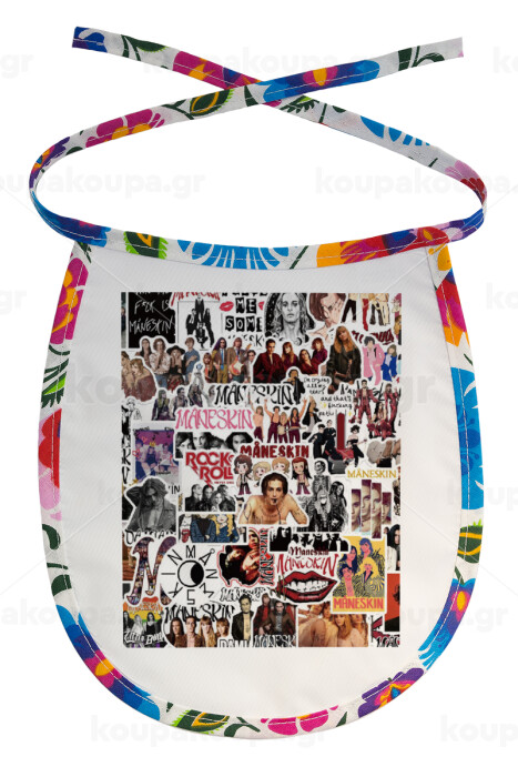 Maneskin stickers, Σαλιάρα μωρού αλέκιαστη με κορδόνι Χρωματιστή