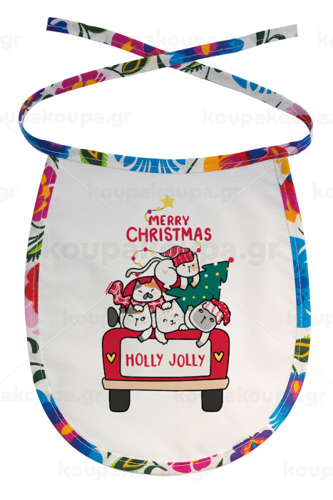 Merry Christmas cats in car, Σαλιάρα μωρού αλέκιαστη με κορδόνι Χρωματιστή