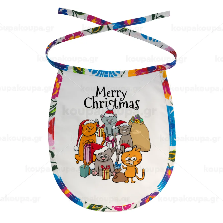 Merry Christmas Cats, Σαλιάρα μωρού αλέκιαστη με κορδόνι Χρωματιστή