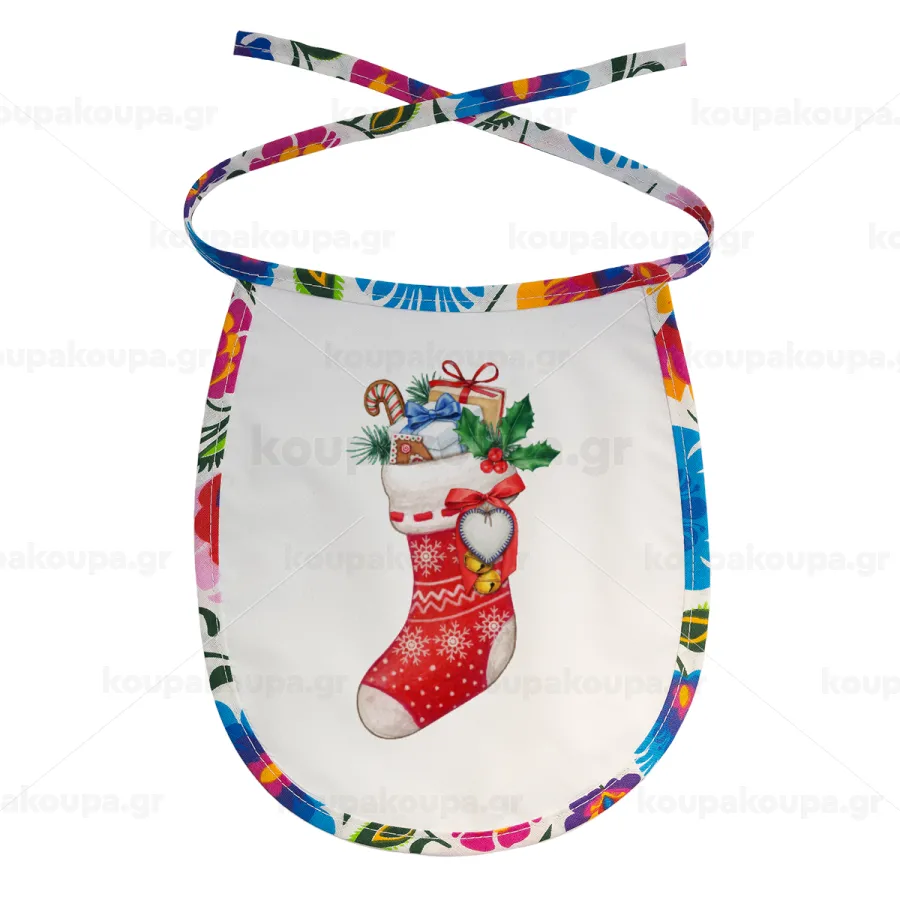 Xmas boot, Σαλιάρα μωρού αλέκιαστη με κορδόνι Χρωματιστή