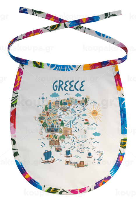 Χάρτης Ελλάδος, Σαλιάρα μωρού αλέκιαστη με κορδόνι Χρωματιστή