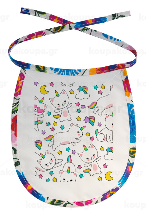 Cats unicorns, Σαλιάρα μωρού αλέκιαστη με κορδόνι Χρωματιστή