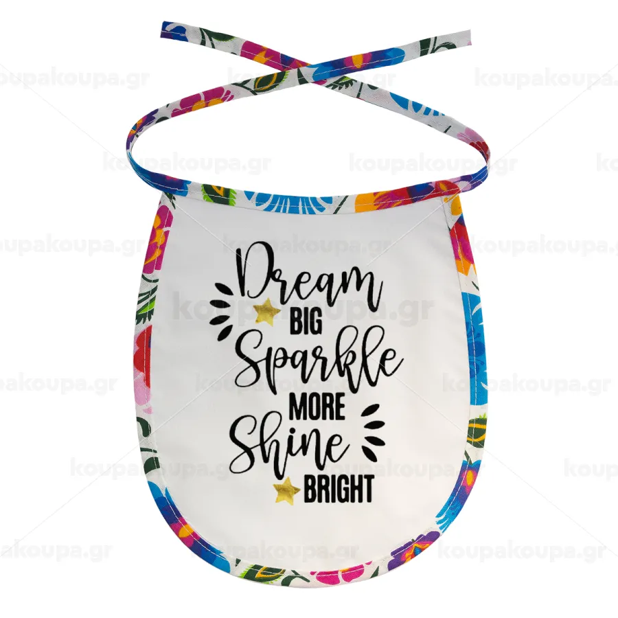 Dream big, Sparkle more, Shine bright, Σαλιάρα μωρού αλέκιαστη με κορδόνι Χρωματιστή