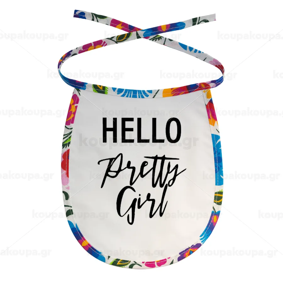 Hello pretty girl, Σαλιάρα μωρού αλέκιαστη με κορδόνι Χρωματιστή