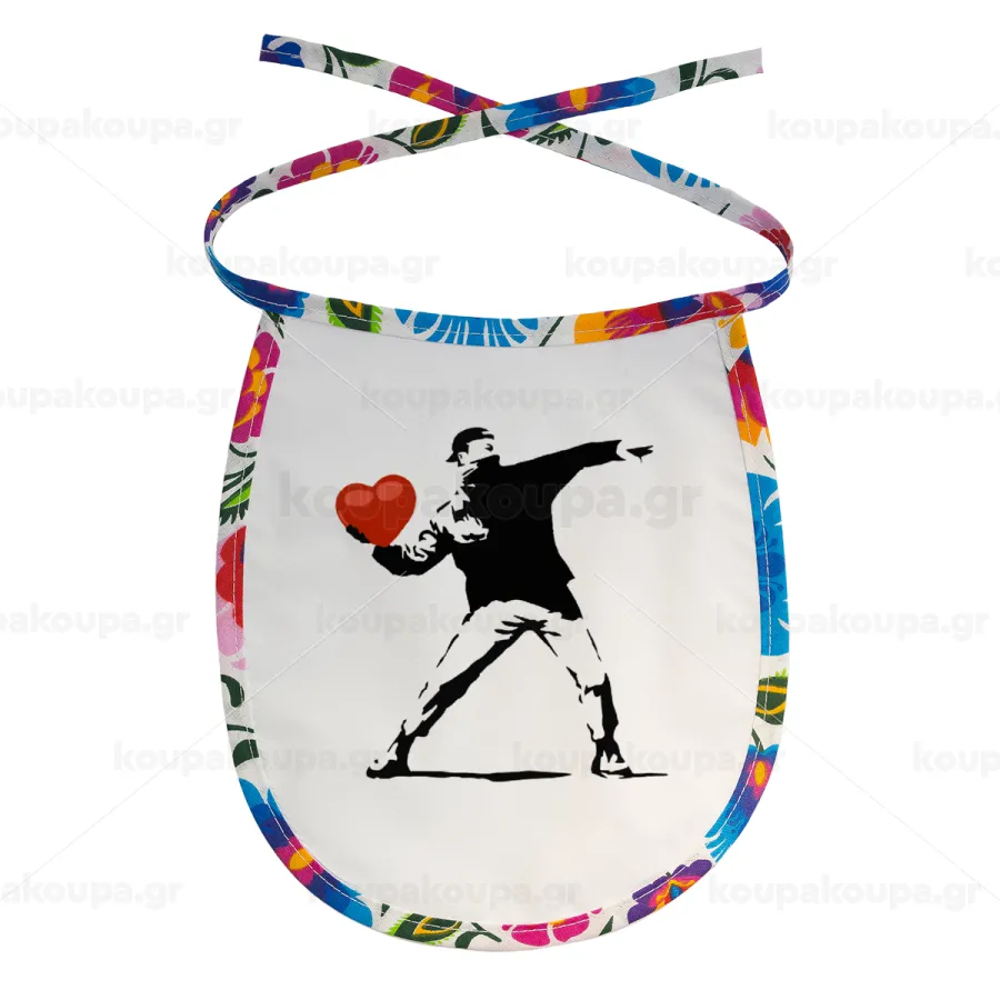 Banksy (The heart thrower), Σαλιάρα μωρού αλέκιαστη με κορδόνι Χρωματιστή