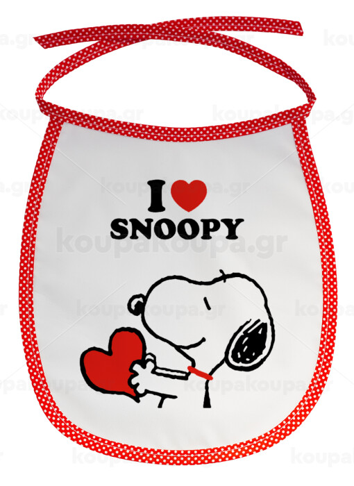 I LOVE SNOOPY, Σαλιάρα μωρού αλέκιαστη με κορδόνι Κόκκινη