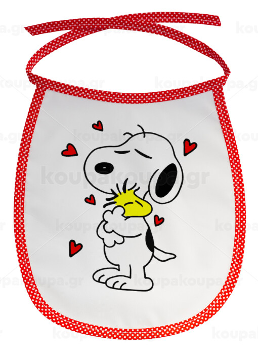 Snoopy Love, Σαλιάρα μωρού αλέκιαστη με κορδόνι Κόκκινη