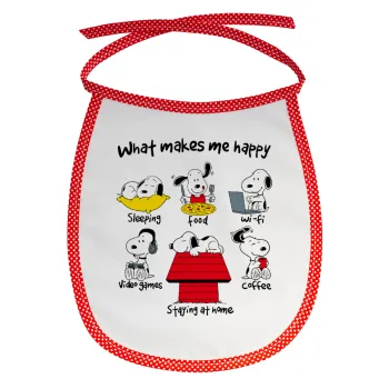 Snoopy what makes my happy, Σαλιάρα μωρού αλέκιαστη με κορδόνι Κόκκινη