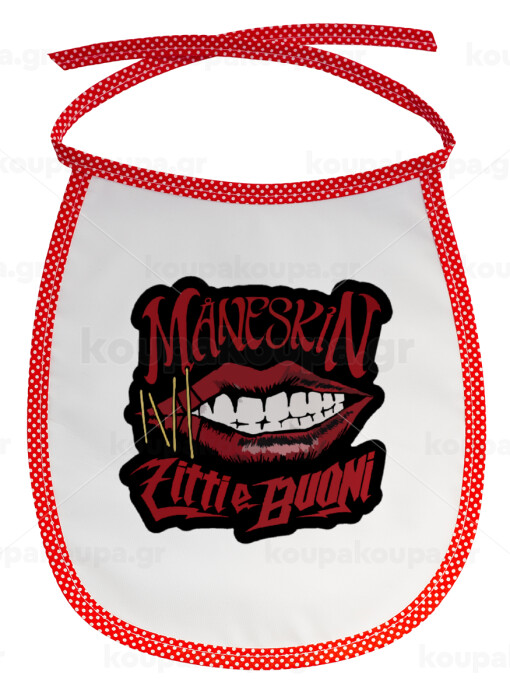 Maneskin lips, Σαλιάρα μωρού αλέκιαστη με κορδόνι Κόκκινη