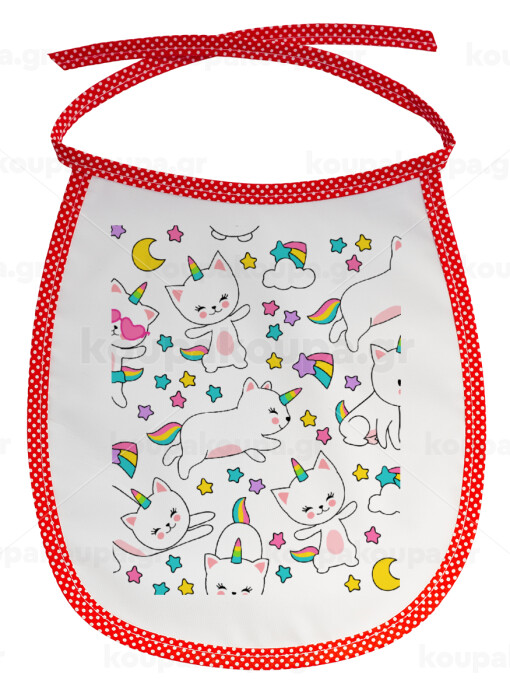 Cats unicorns, Σαλιάρα μωρού αλέκιαστη με κορδόνι Κόκκινη