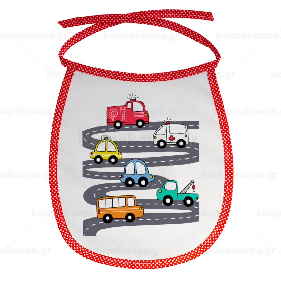 Hand drawn childish set with cars, Σαλιάρα μωρού αλέκιαστη με κορδόνι Κόκκινη