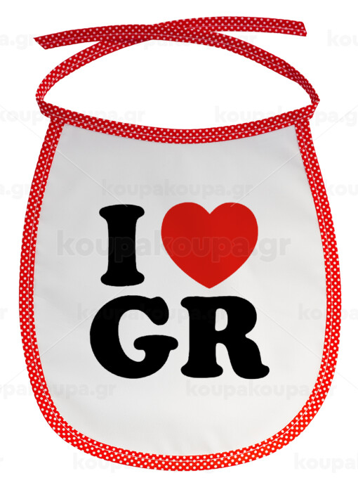 I Love GR, Σαλιάρα μωρού αλέκιαστη με κορδόνι Κόκκινη