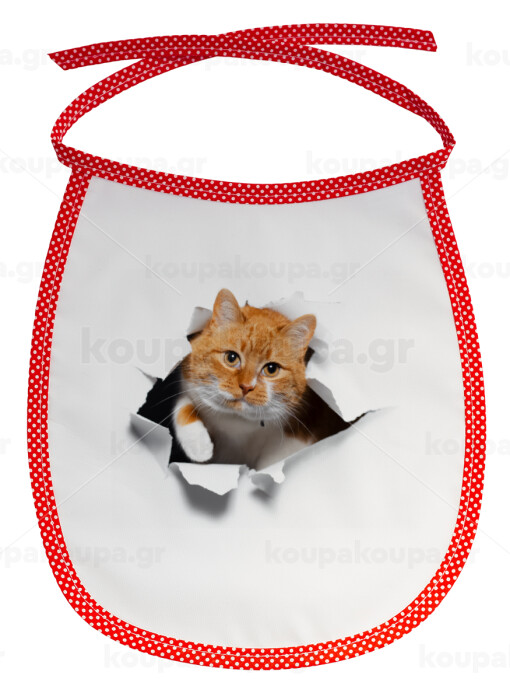 Cat cracked, Σαλιάρα μωρού αλέκιαστη με κορδόνι Κόκκινη