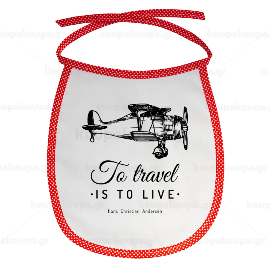 To travel is to live, Σαλιάρα μωρού αλέκιαστη με κορδόνι Κόκκινη