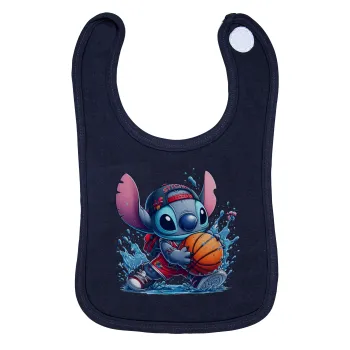 Stitch Basketball, Σαλιάρα με Σκρατς 100% Organic Cotton Μπλε (0-18 months)