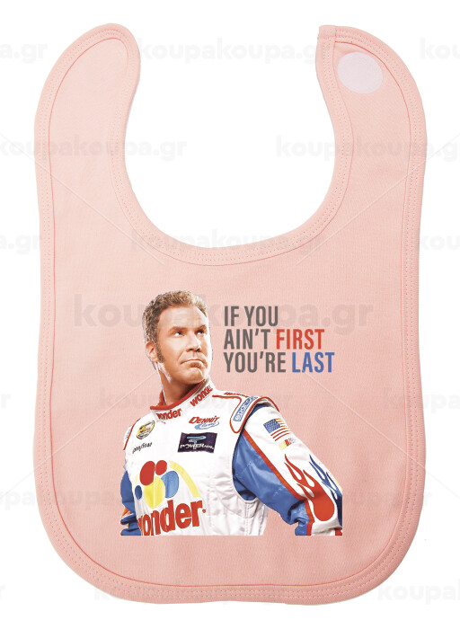 If You Ain't First You're Last Ricky Bobby, Talladega Nights, Σαλιάρα με Σκρατς ΡΟΖ 100% Organic Cotton (0-18 months)